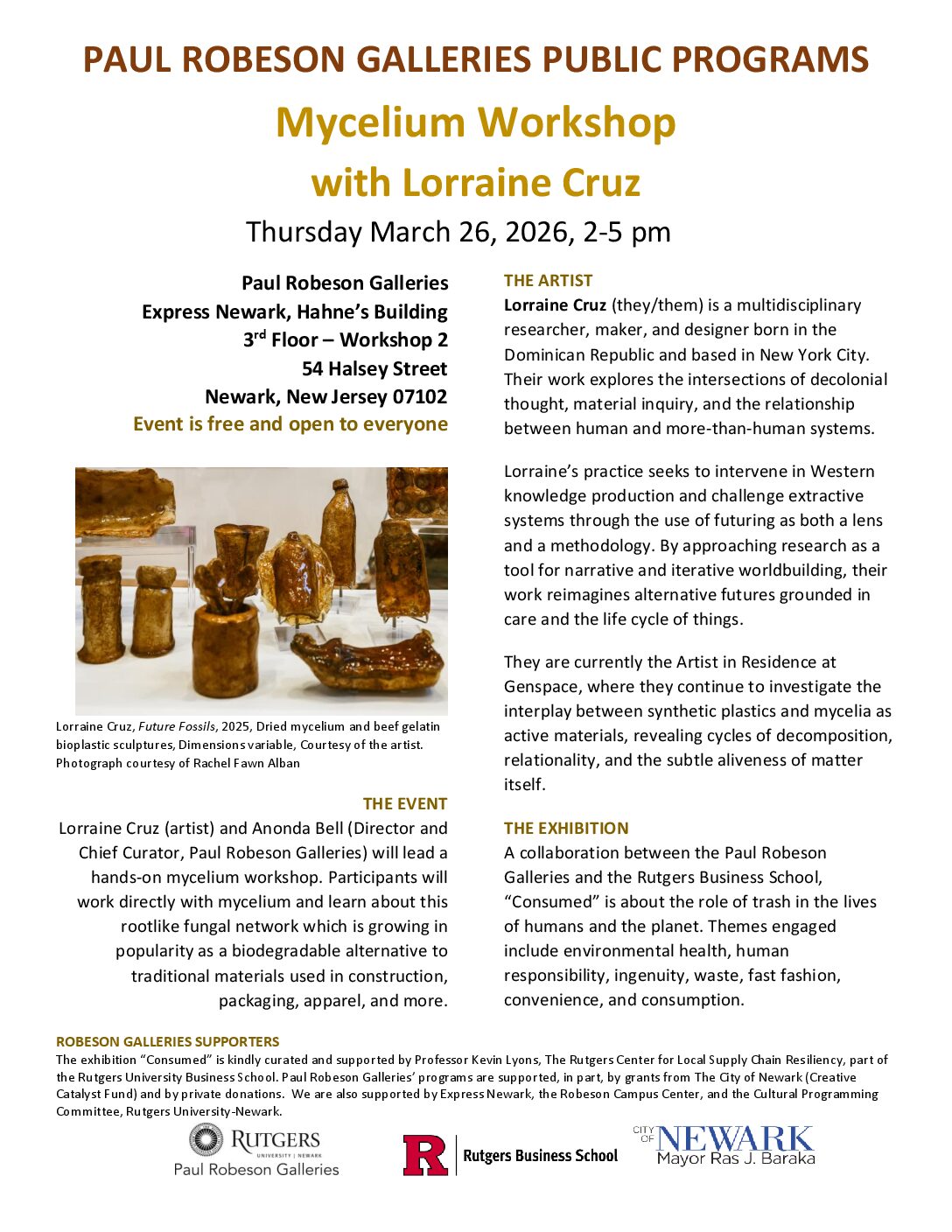 Time: Thursday, 03/26/20262:00 pm - 5:00 pm / Workshop 2, Paul Robeson Galleries, Express Newark