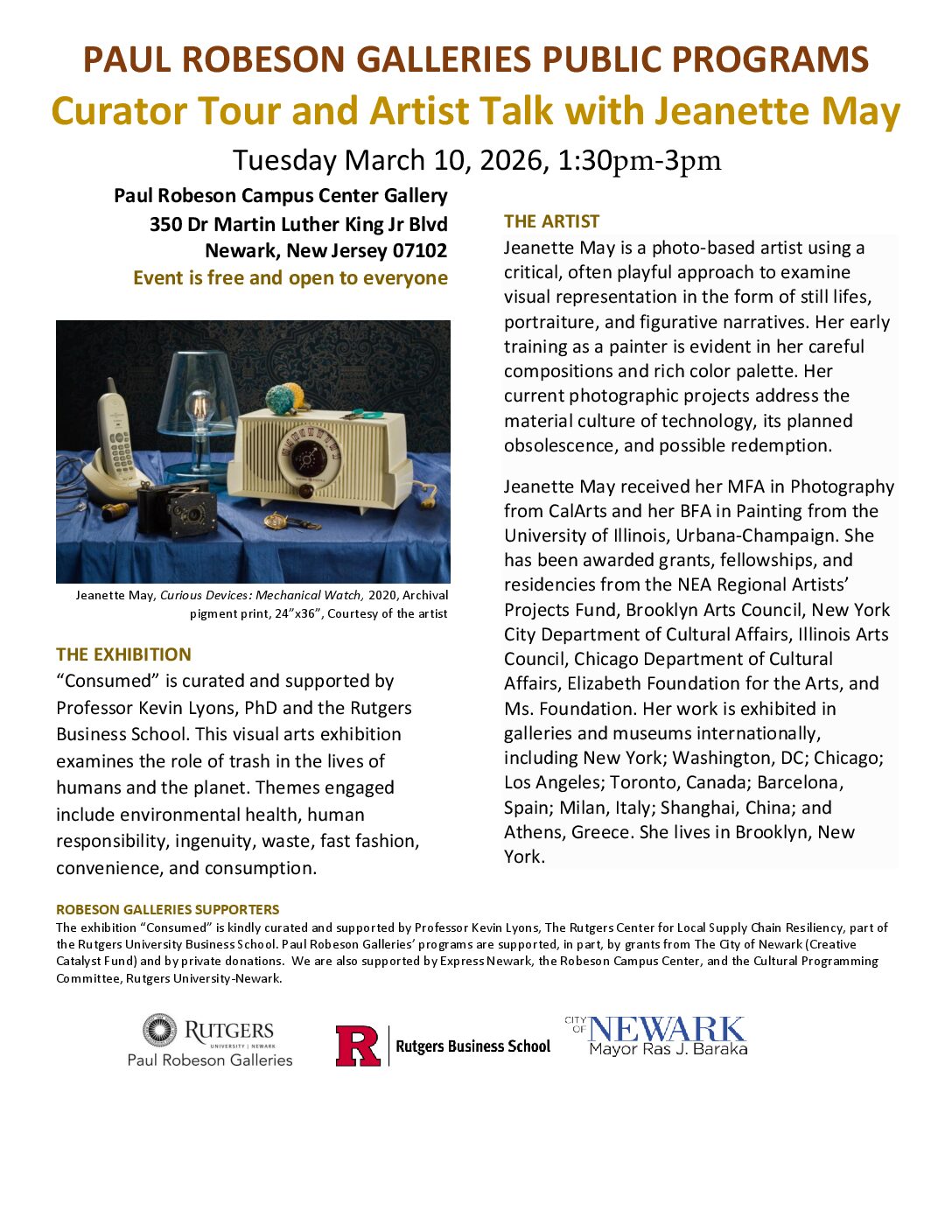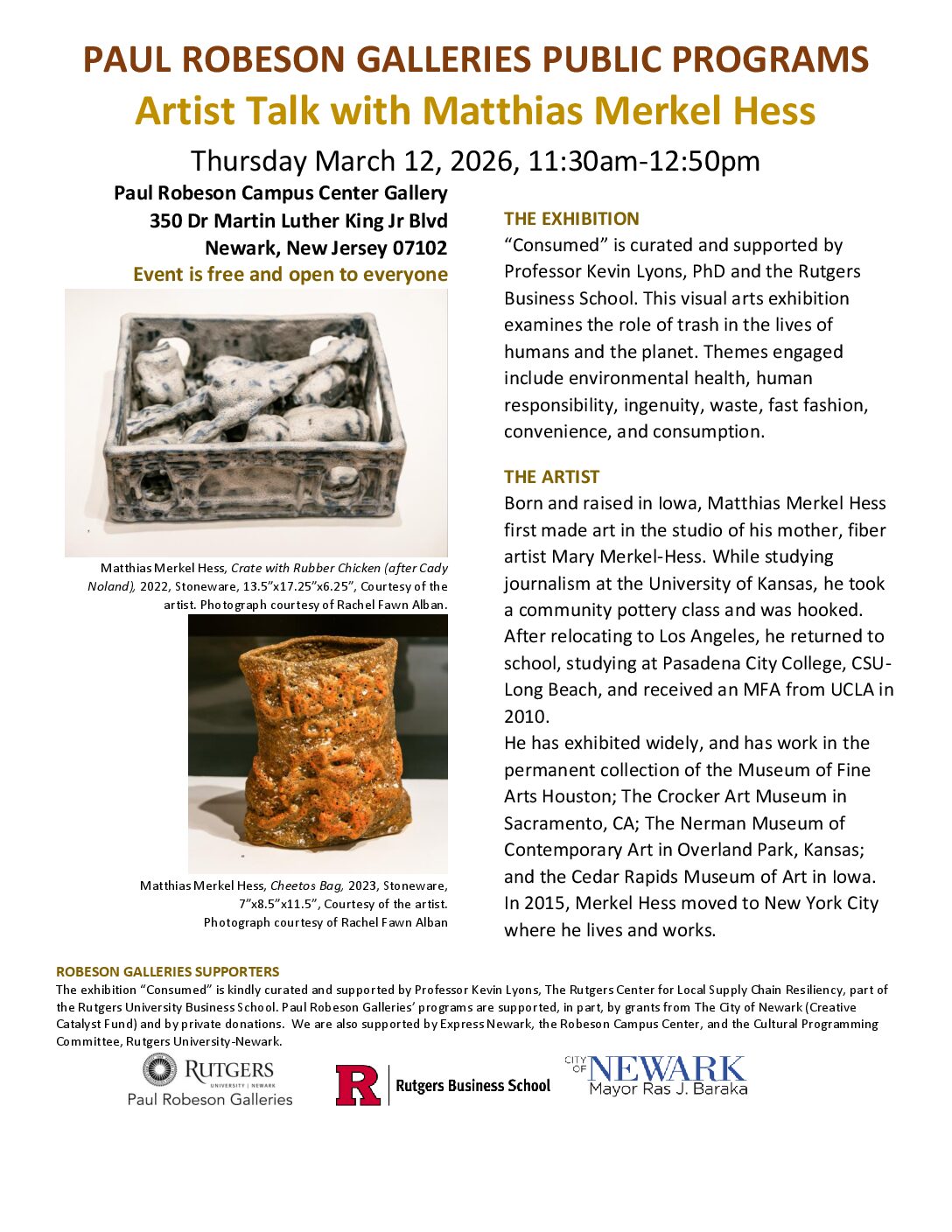 Time: Monday, 03/16/202611:30 am - 12:50 pm / Main Gallery, Paul Robeson Galleries, Express Newark