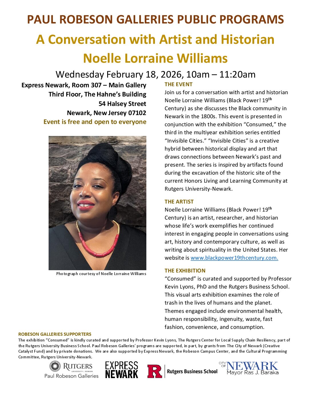 11:30 am - 12:50 pm / Main Gallery, Paul Robeson Galleries, Express Newark